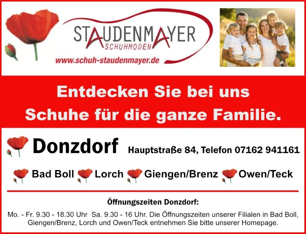Willkommen bei Schuhhaus Staudenmayer Erleben Sie unseren besonderen Service und unsere einzigartige Auswahl an modischen, eleganten und komfortablen Markenschuhen für Damen, Herren und Kinder in angenehmer Atmosphäre. Unsere Mitarbeiterinnen bieten Ihnen eine kompetente, freundliche und kundenorientierte Beratung und präsentieren Ihnen gerne unser sorgfältig ausgesuchtes Angebot nationaler und internationaler Schuhmarken. Wir freuen uns auf Sie!